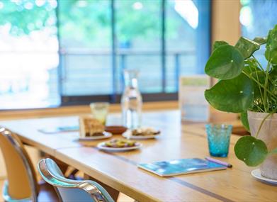Newly installed blinds keep the sun at bay when at its brightest. Included in the room hire: wifi, projector and flip charts.