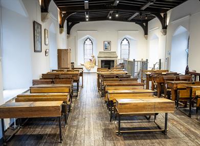 The schoolroom interior is currently only available for group bookings on the Reading Museum website.