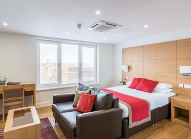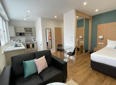 100 Kings Road is House of Fisher’s exclusive flagship Aparthotel in Reading offering a range of studio, one, two and three bedroom serviced apartments perfectly located in central Reading. Just a 5 minute walk away is the Oracle shopping mall and a 9-minute walk to the main train and bus stations, both with direct links to London and surrounding business parks. With an onsite 24-hour Guest Services team, reception desk, guest lounge, lift to all floors, air conditioning throughout the building; 100 King’s Road is the premium Aparthotel within Reading. There is also a competitively priced 24-hour Gym below (at cost).